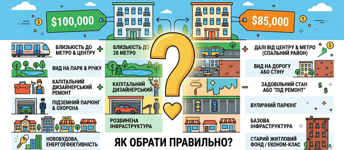 Правильний підхід — оцінювати квартиру комплексно: як місце для життя, як середовище і як інвестицію. І тоді різниця в ціні перестає виглядати випадковою — вона стає логічною.